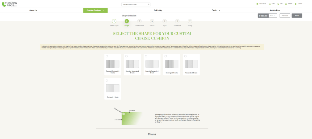 When customizing a chaise lounge online, you are given the option to choose from different backrest designs, each with a specific number of breaks or curves. These design choices impact the aesthetics and ergonomics of the chaise lounge. Here’s an explanation of the options CushionPros.com offers: